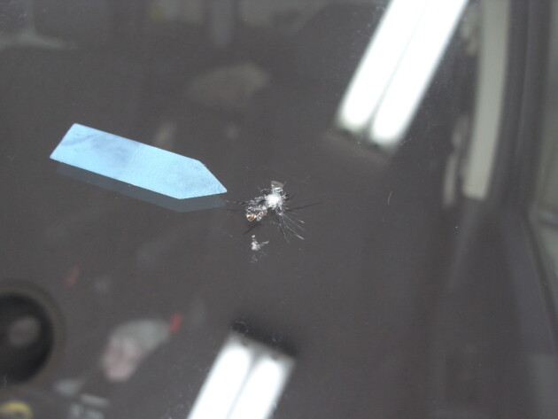 マツダ3のフロントガラスに飛び石で出来た欠け傷のリペアです。