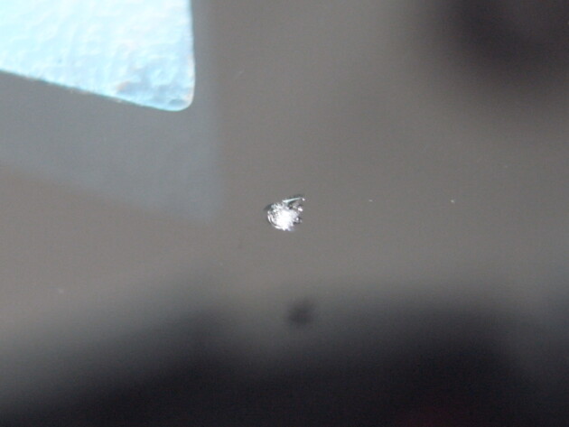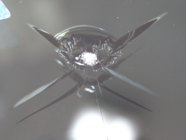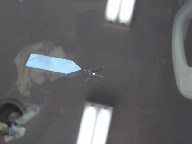 名阪国道での飛び石で直径3.3cmのひび割れです。