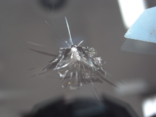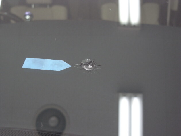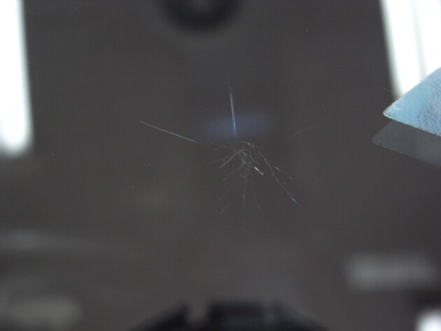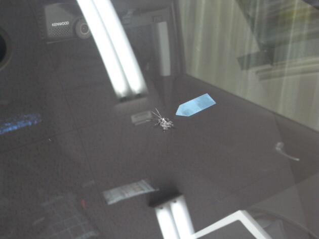 フロントガラスの真ん中やや助手席側の飛び石被害です。