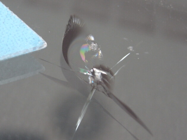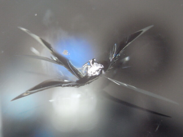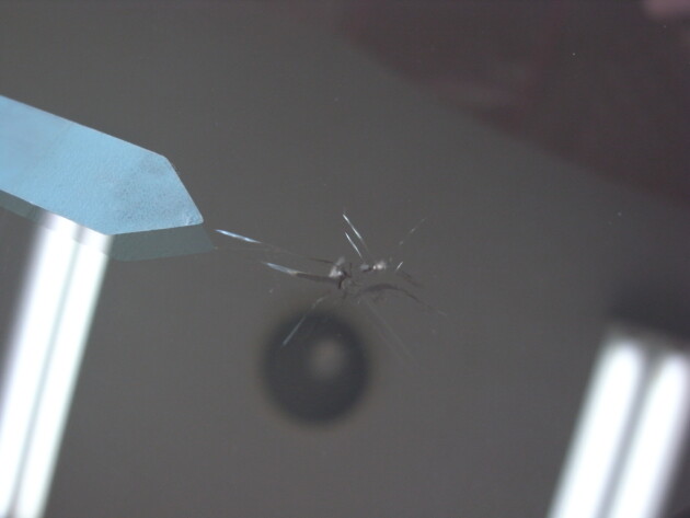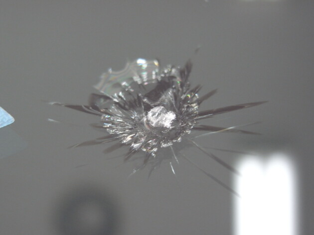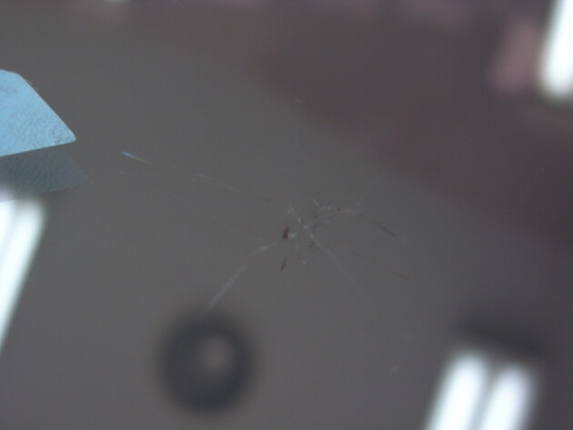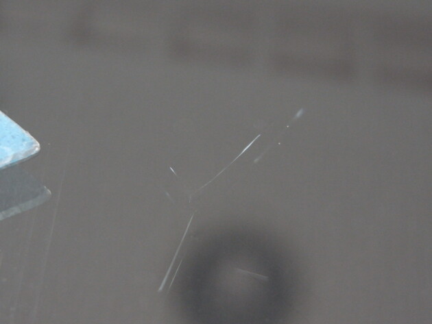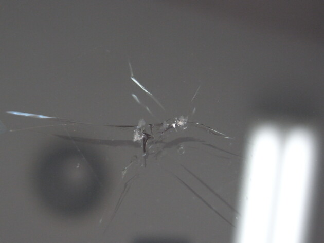 衝撃点が2つの直径2cmのひび割れです。