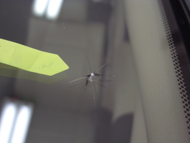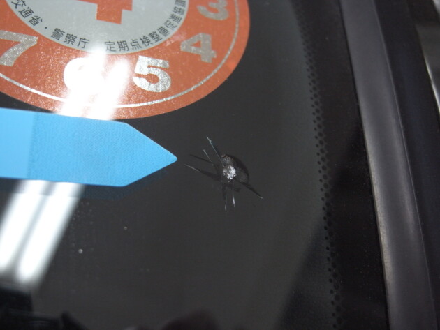助手席側の端から2.5cmの所の飛び石傷です。