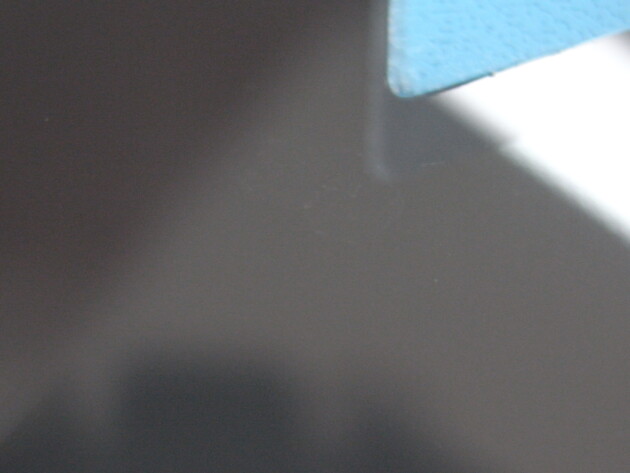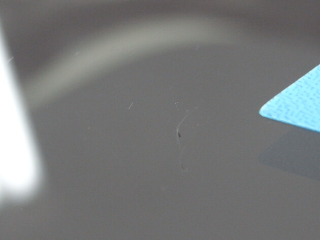 この傷はひび割れのように見えますが表面に出来た欠け傷が薄くはがれる前の状態でひび割れではないことをご説明させていただいたのち、ひび割れではなくてチッピングのリペアのご依頼といううことになりました。