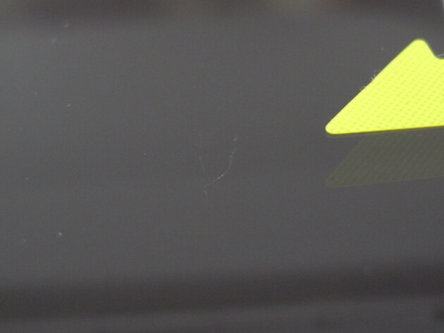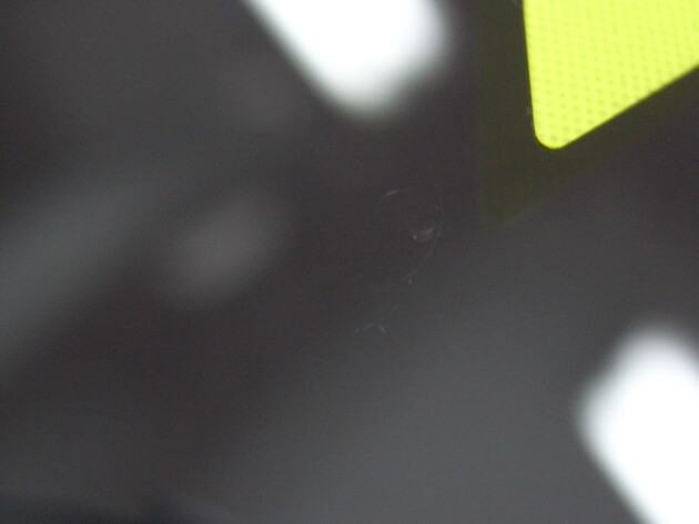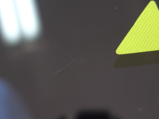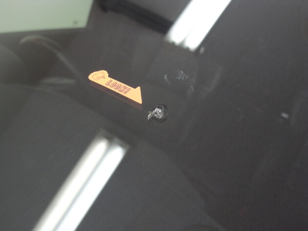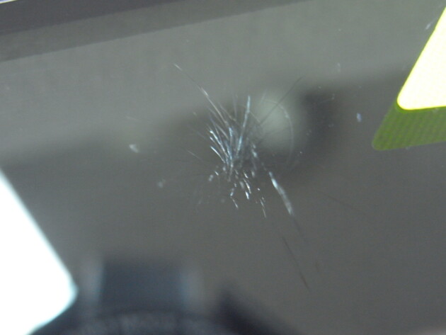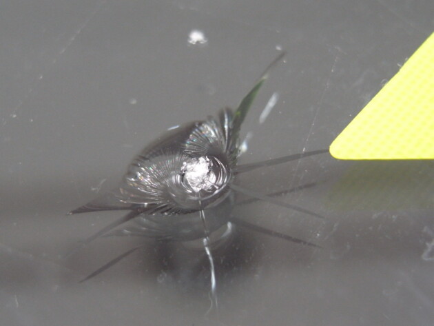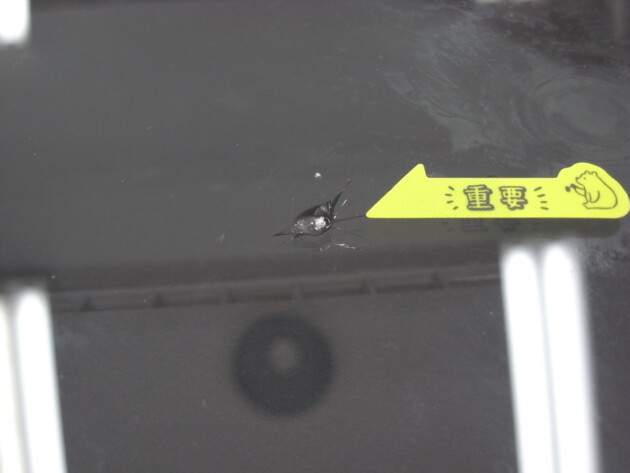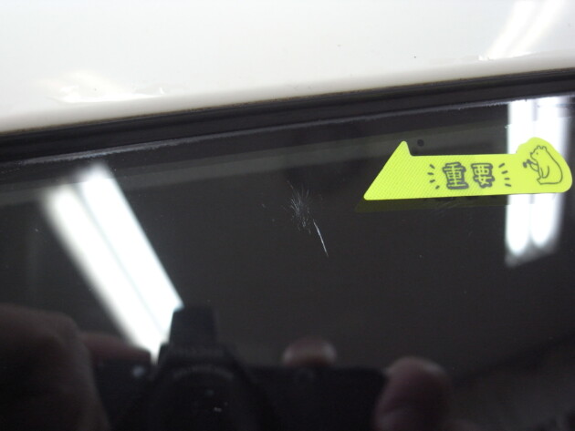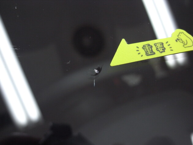 今回の飛び石の位置は、ガラスの上の端から1.2cmの所でひび割れが非常に広がりやすく修理するのも怖い場所でした。
