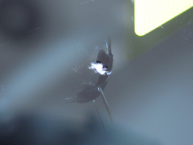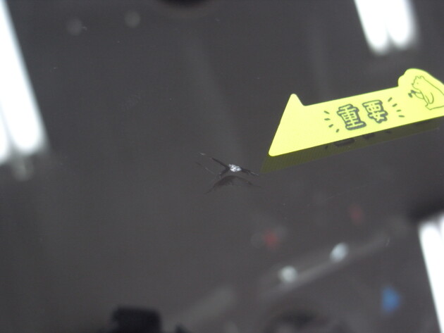 こんなに小さな軽い石のようなものが一般道の対向車線のない場所で飛んで(落ちて)きてガラスにひび割れを作るなんて不思議な感じがしました。