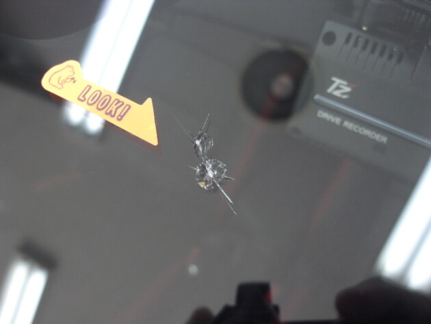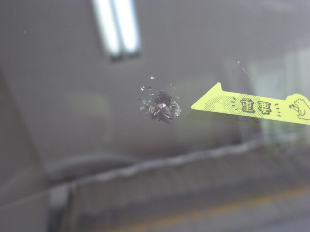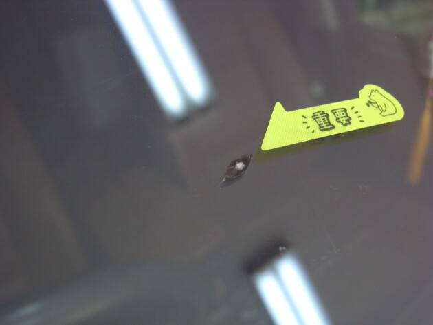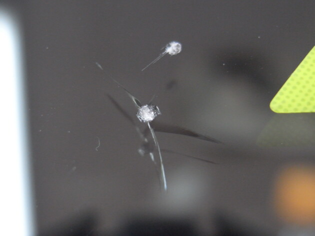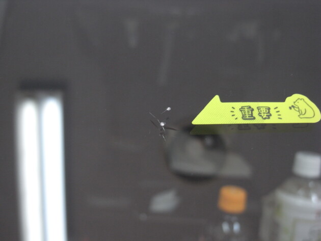 フロントガラスの真ん中やや運転席側の飛び石被害です。