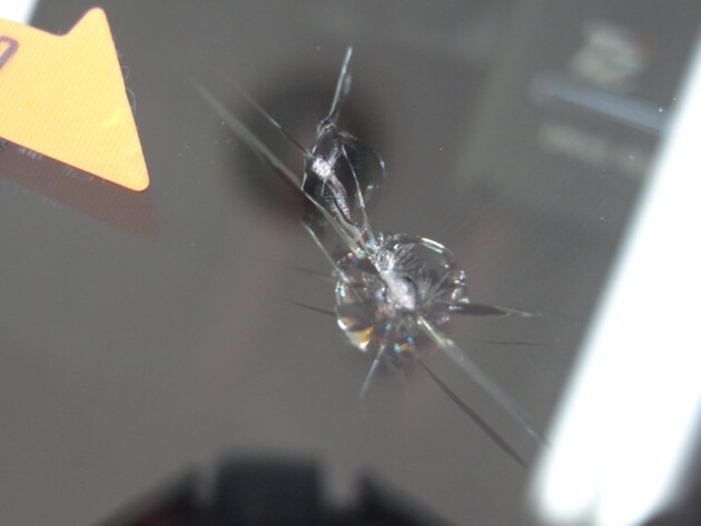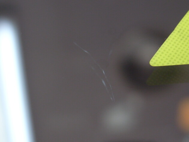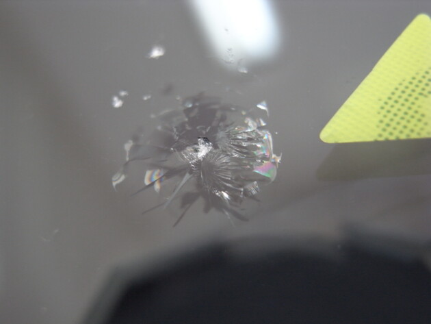 直径1.7cmのひび割れですが、大きな石が飛んできたのか表面に欠け傷がたくさん出来ています。