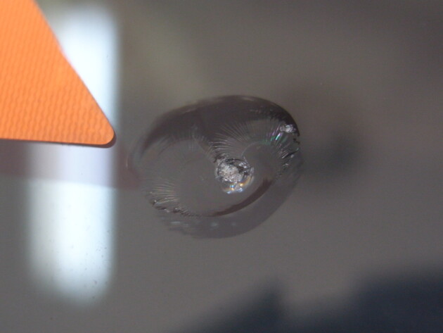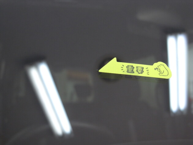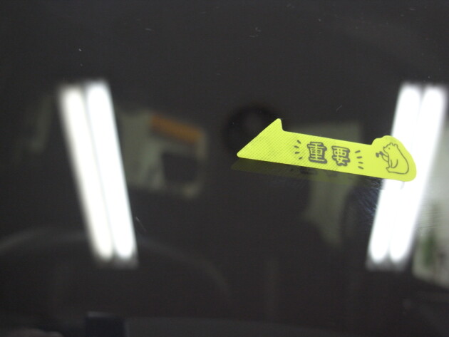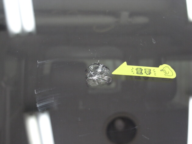 日産ノートのフロントガラスに飛び石で出来た欠け傷(チッピング)のリペアです。