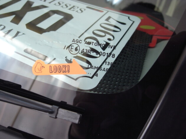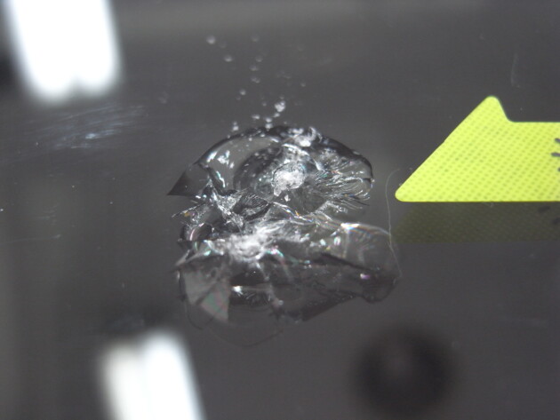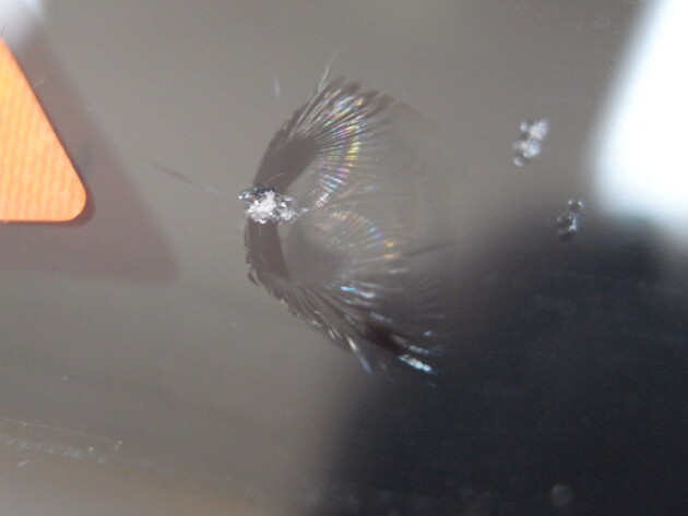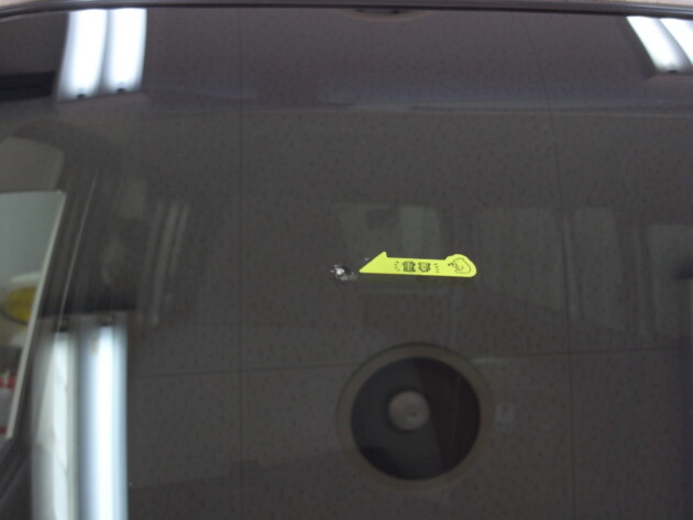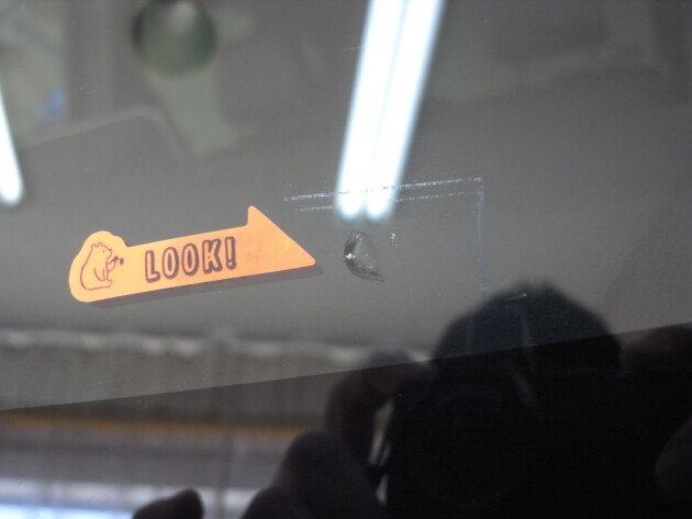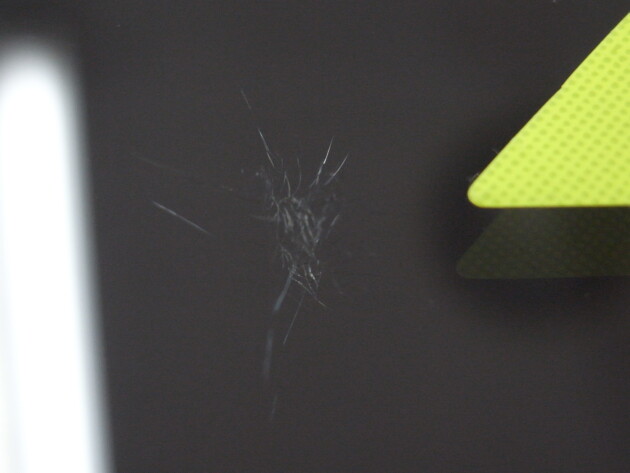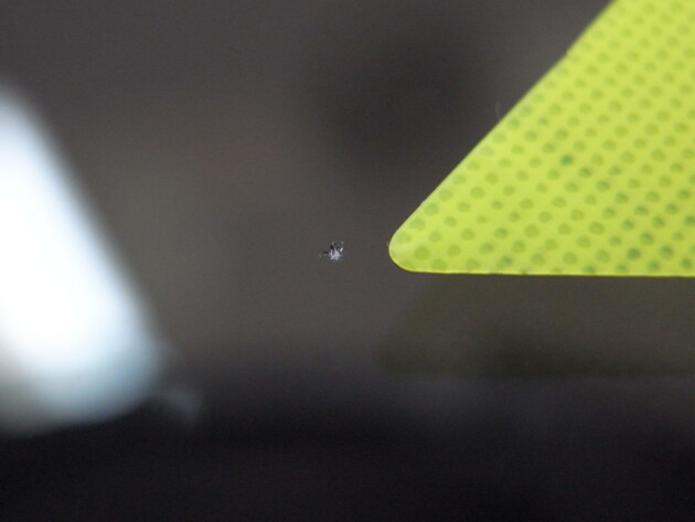 フロントガラスの助手席側の隅っこのガラスのマークが入ったところの飛び石被害です。