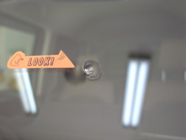 日産 NV100 フロントガラス 飛び石 修理 1.4cmのひび割れ