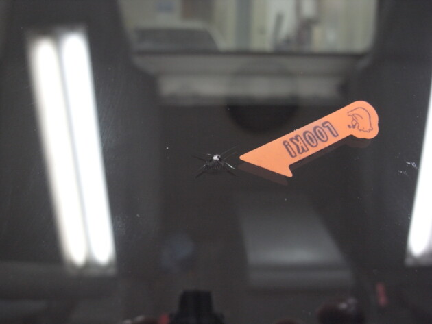 ホンダフィットのフロントガラス飛び石修理(リペア)です。