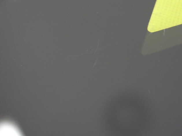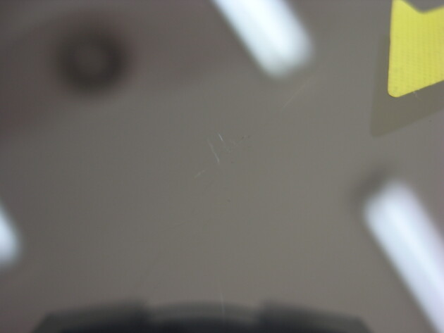 見えにくい細い放射状のひび割れです。