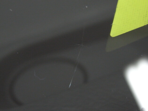 帰宅後しばらくしてから傷があることに気が付いて、ディーラーさんに持ち込んだところこれは交換しないといけにと判断されたそうです。