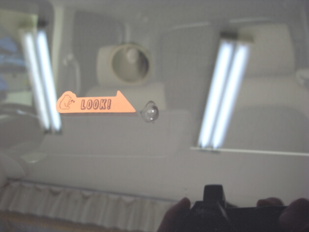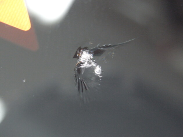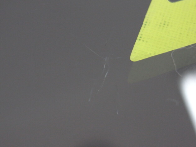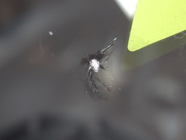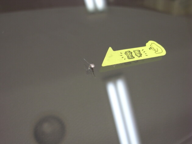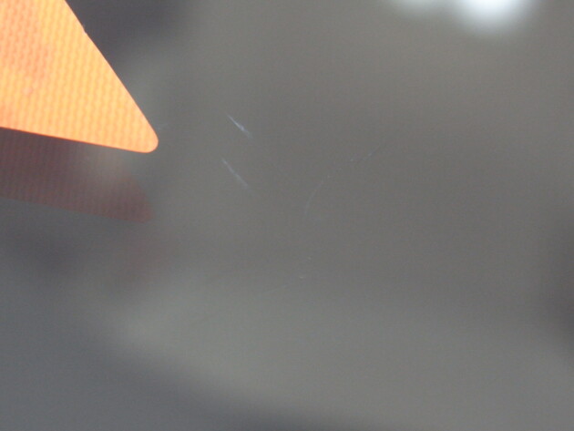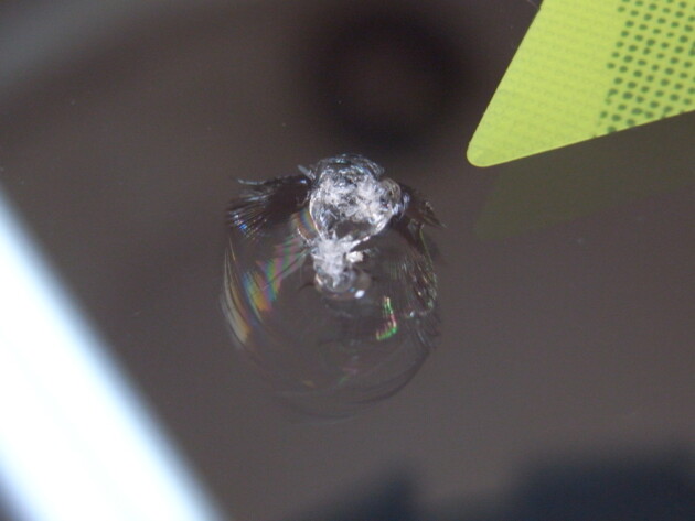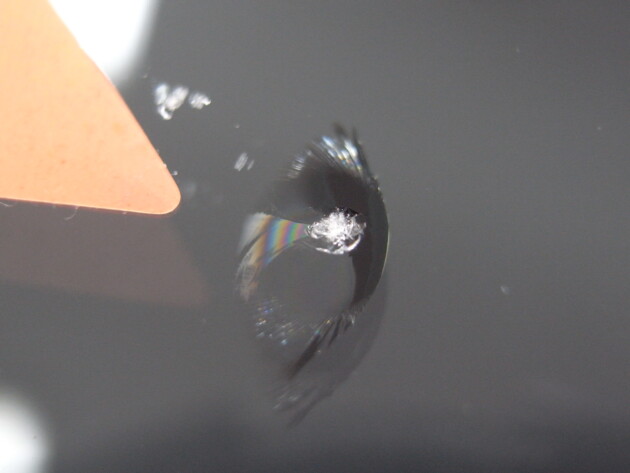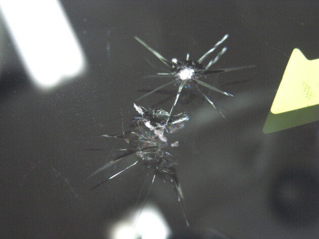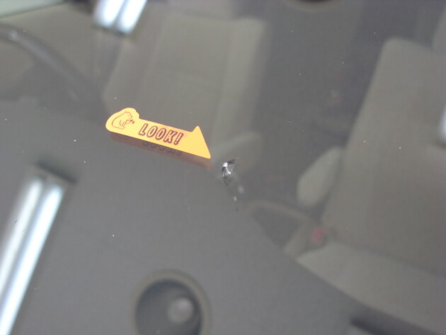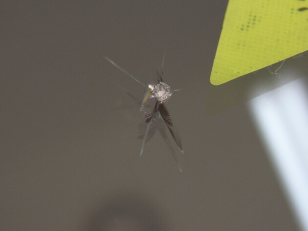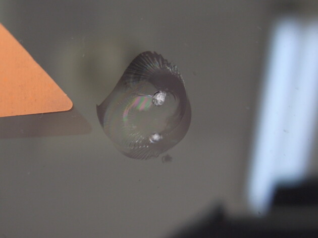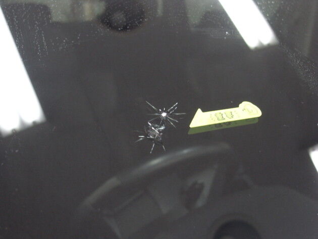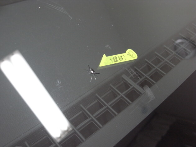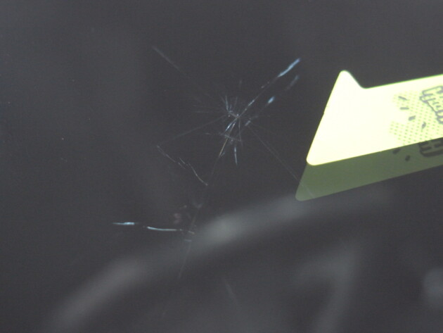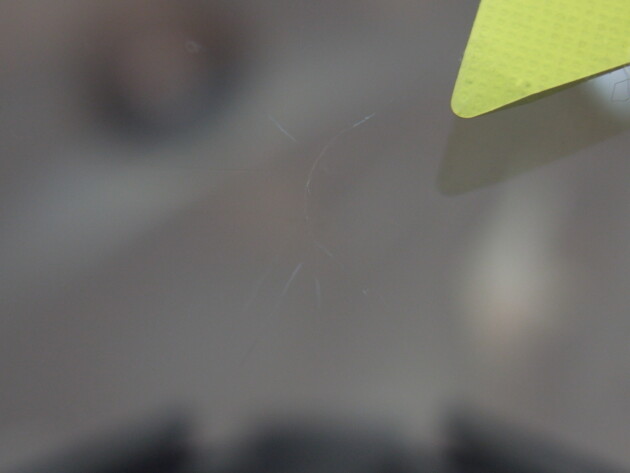 運転席側に直径3.8cmのひび割れです。