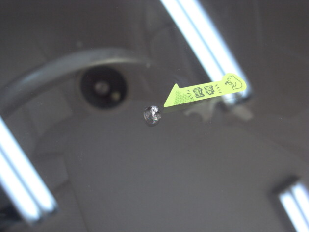 フロントガラスの下側の飛び石被害です。
