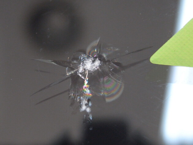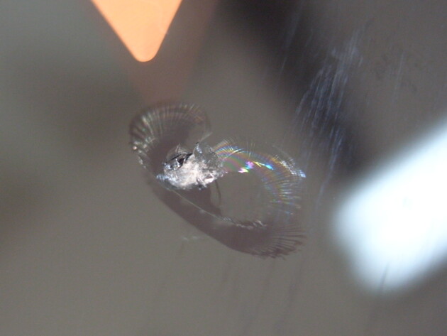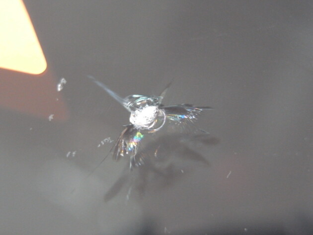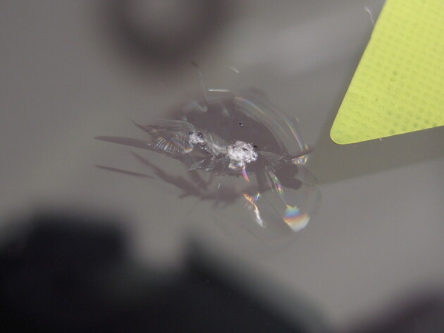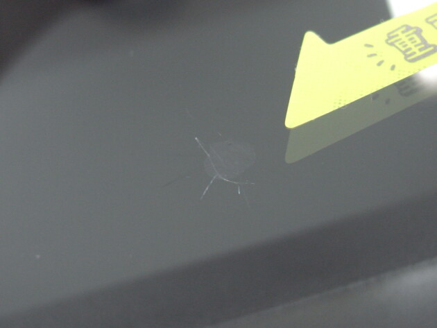 マセラティギブリのフロントガラスに飛び石で出来たチッピング(欠け傷)のリペアです。
