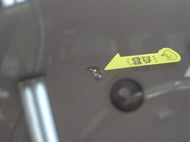 スズキキャリィのフロントガラス飛び石修理(リペア)です。