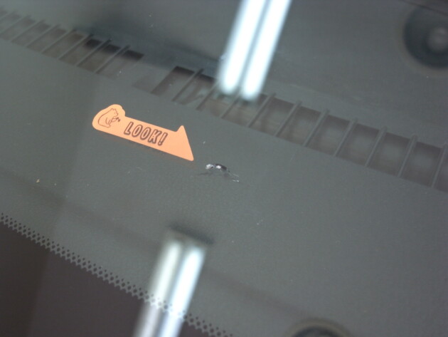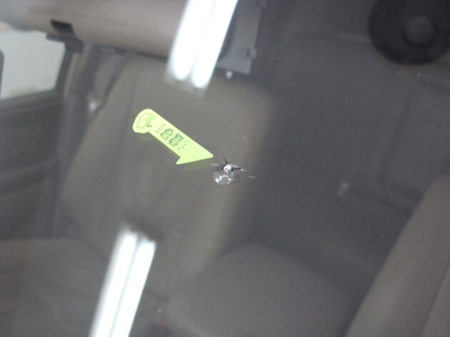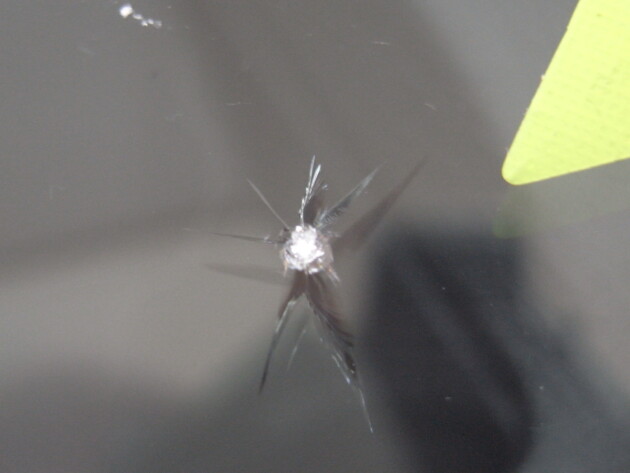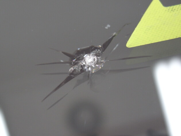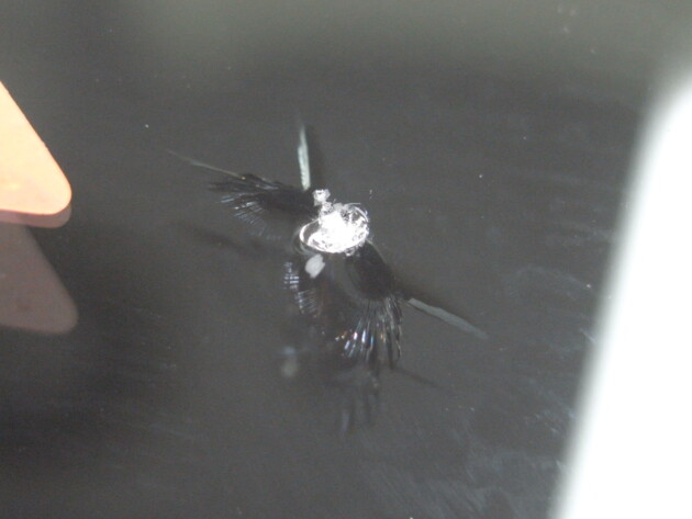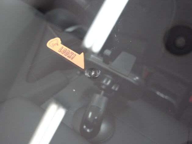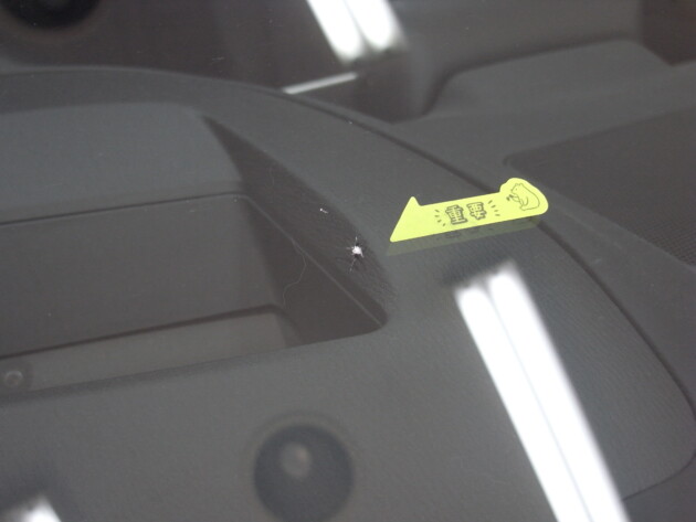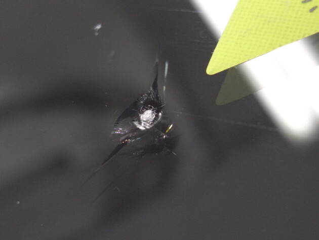 先週の金曜日に高速道路を走行中の飛び石被害です。