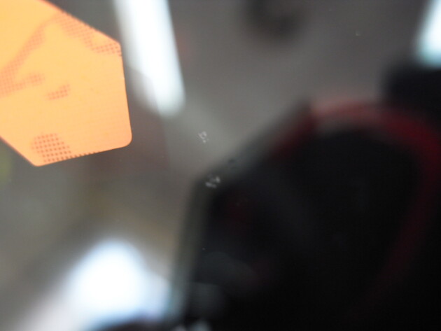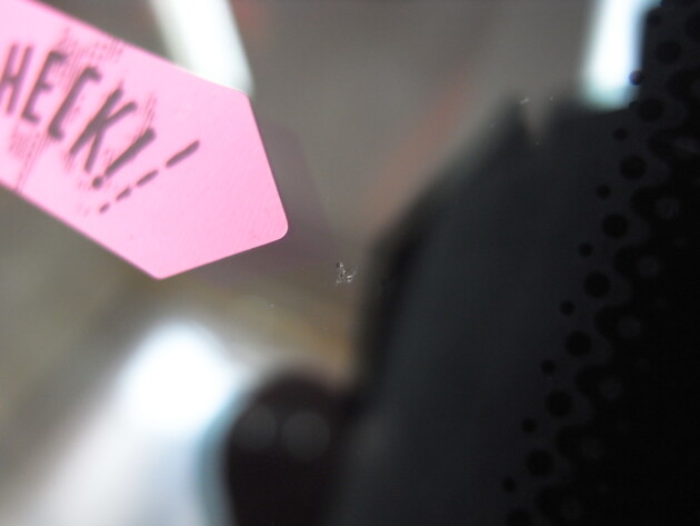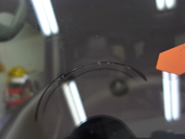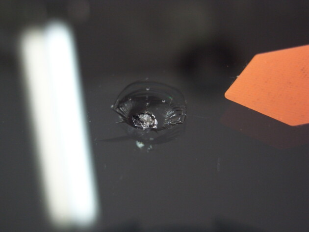 今回の飛び石傷は、直径3㎝のヒビ割れです。