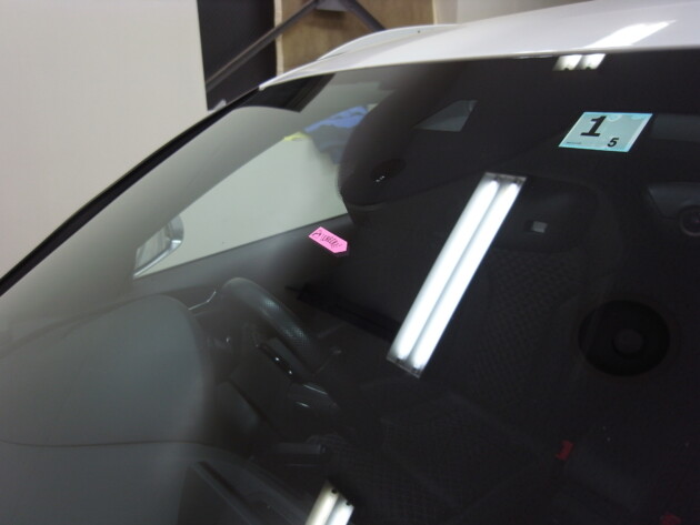 フロントガラスの下から5㎝黒いセラミックがプリントされた部分のすぐ上に2つのヒビ割れがすぐ近くに出来ています。