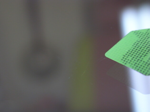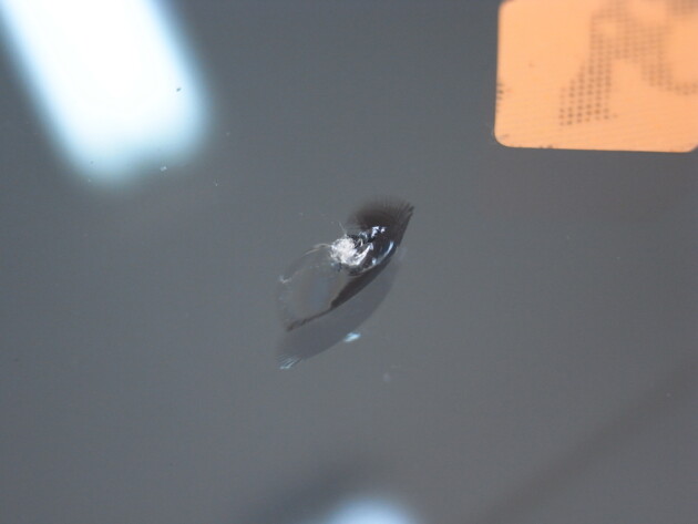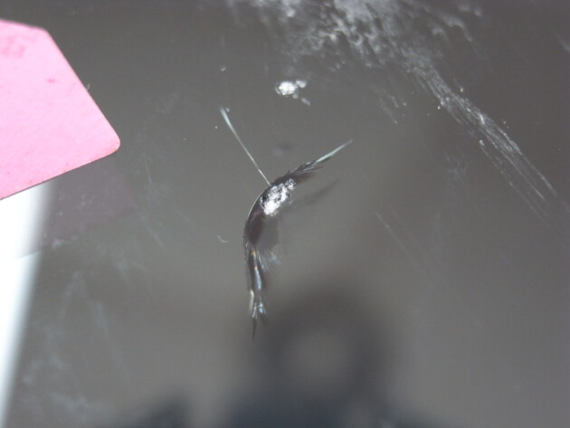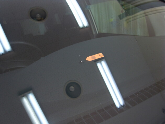 今回の傷の位置は、フロントガラスの下の黒いセラミックのドット部分です。