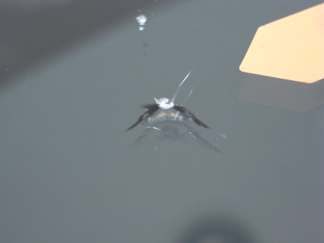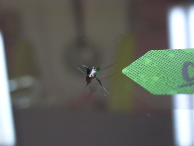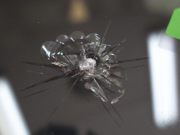 複数個所衝撃点が有り複雑なヒビ割れになっています。