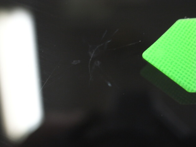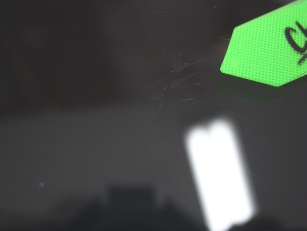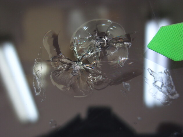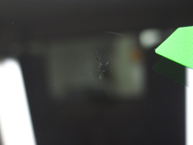 テープを貼ったままだと分かりずらかったのでこのようにみると2か所石があたっているのが分かります。