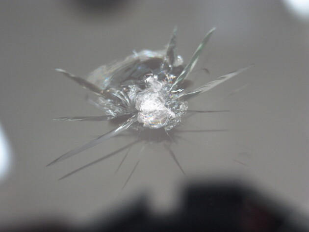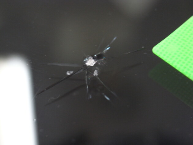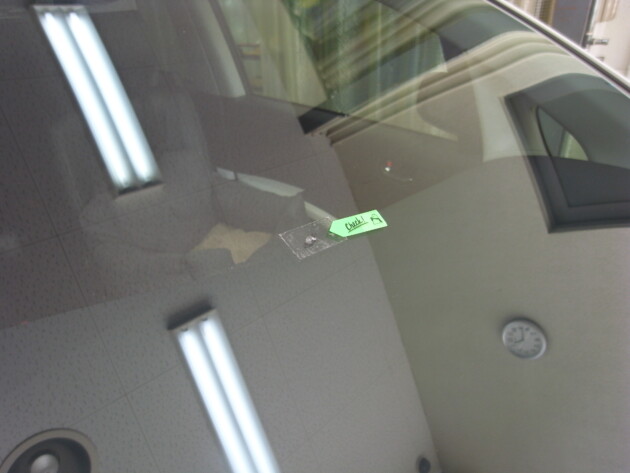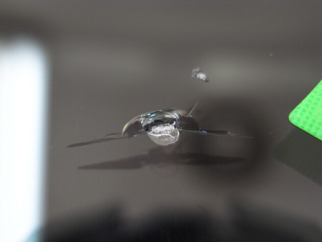 今回は、フロントガラスに飛び石で出来たチッピング小さな欠け傷の修理です。