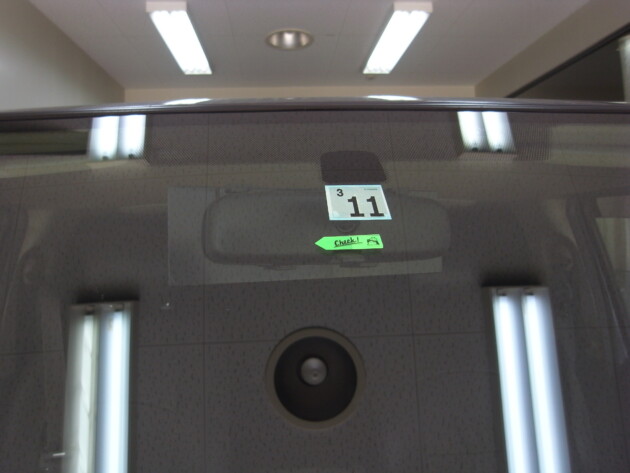 フロントガラスの真ん中です。