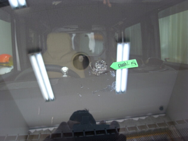 フロントガラスの真ん中やや助手席側の飛び石によるチッピングです。