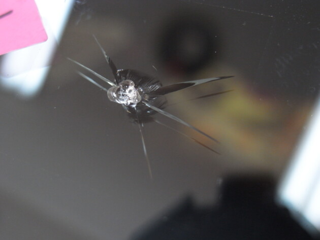 フロントガラスの真ん中やや助手席側の飛び石です。